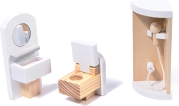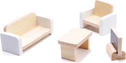 V balení nájdete 16 kusov nábytku: stôl, stoličky, posteľ, lampu, kreslo, pohovku, konferenčný stolík, televízor, klavír, lavicu, ležadlo, slnečník, sprchu, umývadlo a toaletu.