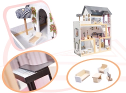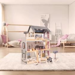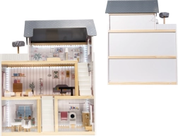 Trojposchodový domček pre bábiky s výškou 78 cm je navrhnutý na dlhé hodiny kreatívnej hry. Realistické potlače interiéru, schodisko a otvorená konštrukcia zabezpečujú ľahký prístup do všetkých miestností. Integrovaná LED svetelná lišta krásne presvieti izby a vykúzli útulnú atmosféru pri hraní.