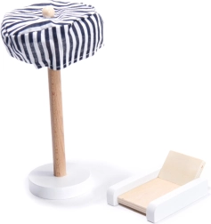 Strešná terasa s ležadlom a pruhovaným slnečníkom je ideálna na relax vašich bábik a dotvára realistické scénky zo života.