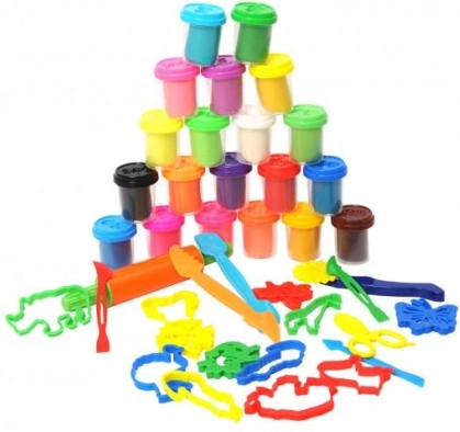 - 20 kelímkov plastelíny, dlátka, formy, vytláčadlá
