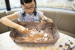 Deti postupne odhaľujú skryté fosílie v sadrovom bloku a učia sa trpezlivosti aj správnym postupom pri vykopávkach. Realistický zážitok z bádateľskej práce doma.