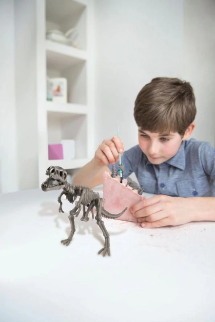 Sada obsahuje sadrový blok s kosťami, základné vykopávacie nástroje a návod. Stačí otvoriť krabicu a začať skúmať – ideálna aktivita na popoludnie aj víkend.