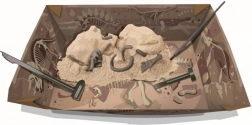 Zažite skutočné vykopávky. Sadrový blok skrýva jednotlivé časti kostry, ktoré deti odhalia pomocou priložených nástrojov.
