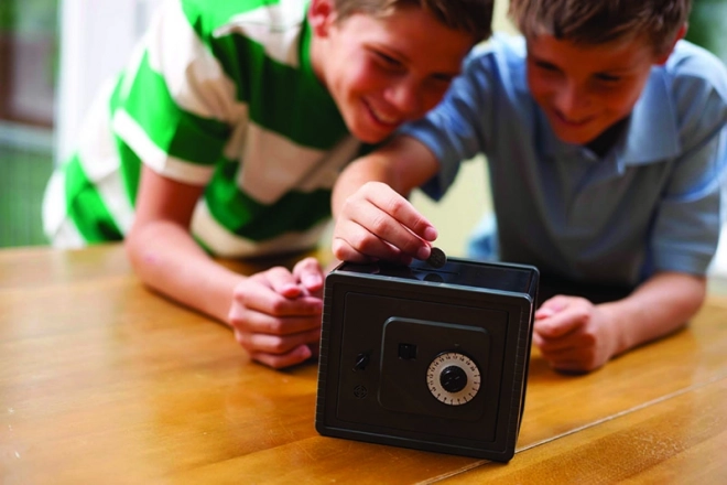 Bezpečne uložte svoje tajné poklady v trezore s číselným zámkom. Pomocou otočného číselníku si nastavíte vlastný kód.