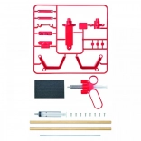 Ovládajte pohyby ramena a klieští čisto hydraulicky pomocou striekačiek a hadičiek. Skvelá ukážka prenosu sily tekutinou v reálnom modeli.