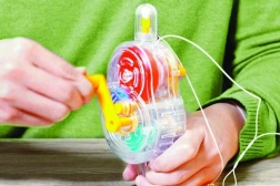 Otoč kľukou a vyrob elektrinu vlastnými silami. Priehľadné telo ukazuje prácu prevodov v reálnom čase.