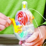 - Priehľadná konštrukcia: farebné kolieska a mechanizmus viditeľné počas chodu