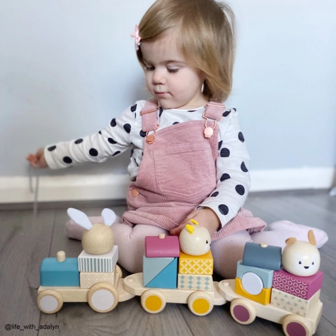 Všetci na palubu! Tento roztomilý drevený ťahací vláčik zo 100% FSC dreva prináša zábavu aj učenie v jednom. Ponúka troch zvieracích pasažierov, rušeň a dva vagóniky a vďaka farebným kockám poslúži ako nasadzovačka aj puzzle na rozvoj jemnej motoriky a počítania. Hladké prevedenie, netoxické farby a odolné materiály zaručujú bezpečné hranie na dlhé roky.