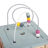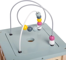 Objavte všestrannú motorickú kocku z kvalitného 100% FSC dreva, ktorá deti zabaví na dlhé hodiny. Na každej strane čaká iná aktivita – vkladacie tvary, guľôčková dráha, ozubené kolieska a ďalšie. Kombinácia prírodného dreva a jemných pastelových farieb je ideálna pre chlapcov aj dievčatá. Hračka podporuje rozvoj motoriky, komunikácie a rozpoznávania čísel a je bezpečná pre deti vďaka šetrným materiálom s certifikáciou FSC.