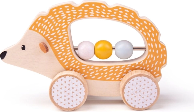 Ježko pomáha rozvíjať jemnú motoriku vďaka pohyblivým korálkam na kovovej tyči.