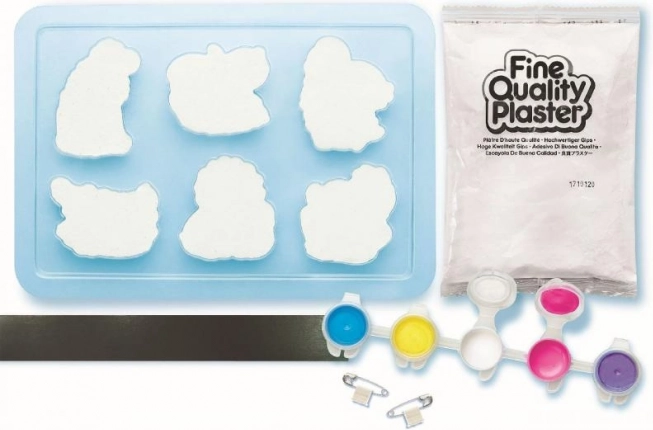 Sada obsahuje materiály na výrobu sadrových odliatkov, ktoré potom deti môžu sami maľovať. Obsahuje tácku s plastickými formami a kvalitnú sadru.