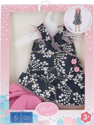 Oblečenie je navrhnuté pre bábiky s výškou 44 cm, najmä pre radu Starlette. Kombinácia tmavomodrých šatočiek s kvetinovým vzorom a ružového klobúčika vytvára očarujúci outfit, ktorý je pohodlný a veľmi fotogenický. Precízne šitie a dôraz na detaily podčiarkujú dlhú tradíciu kvality značky PETITCOLLIN.