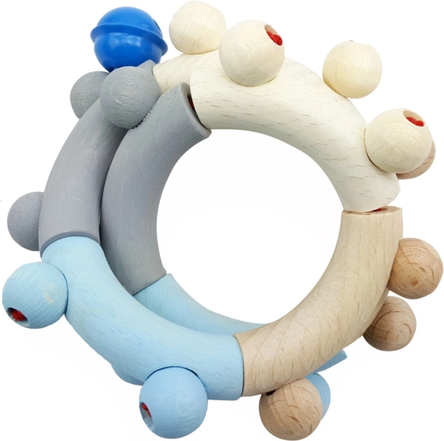 Vysokokvalitná drevená hrkálka, ideálna na stimuláciu predstavivosti a rozvoj jemnej motoriky dieťaťa. Hrkálka zaujme svojimi pastelovými farbami a je eticky vyrobená z ekologicky obhospodarovaných lesov.