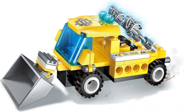 Postavte 8 samostatných vozidiel stavebnej techniky a ich spojením vytvorte jeden veľký viacúčelový model. Variabilný koncept podporuje kreativitu aj technické myslenie.