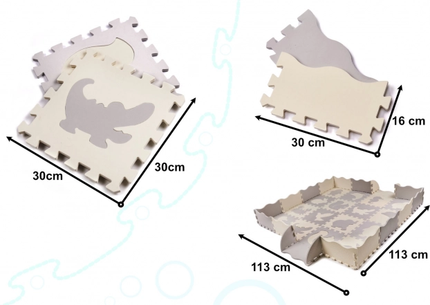 Penená vzdelávacia penová podložka puzzle, sivá a ecru, 36 dielov, 150 × 150 cm