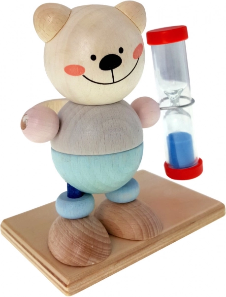 Spríjemnite deťom každodennú hygienu s roztomilými presýpacími hodinami v tvare medvedíka. Odpočítajú ideálne 2 minúty na správne čistenie zubov a vďaka praktickému držiaku na zubnú kefku budú mať deti všetko po ruke. Prírodné neošetrené drevo a kvalitné spracovanie vyrobené v Nemecku zaručujú bezpečnosť aj odolnosť.
