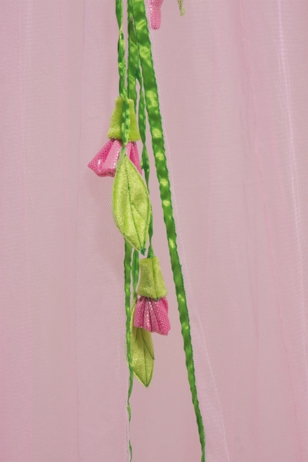 Tento baldachýn je zdobený rôznymi ružičkami a zelenými listami, ktoré dodávajú každej miestnosti hravý a zároveň elegantný vzhľad.