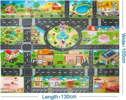 Veľká vodotesná podložka pre deti s potlačou mesta je ideálna pre kreatívne hranie. Je vyrobená z plastu, pripomínajúceho cerátu, čo uľahčuje jej údržbu a čistenie. Vďaka nízkej hmotnosti a možnosti skladania ju možno ľahko prenášať a používať aj mimo domov, napríklad na pikniku.