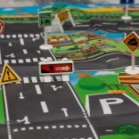 Súčasťou balenia sú rôzne dopravné značky a nálepky, ktoré umožňujú vytvoriť vlastné mesto a naučiť sa základné dopravné predpisy zábavnou formou. Dieťa sa môže tešiť z objavovania nových príbehov a situácií na farebnej hernej ploche.