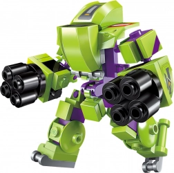 Stavebnica umožňuje tvorbu rôznych modelov, vrátane veľkého obrneného robota, a je kompatibilná s inými stavebnicami.