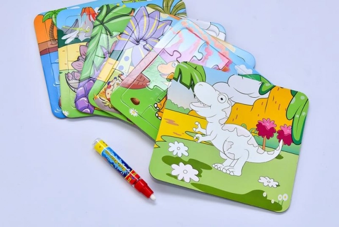 Tento inovatívny výrobok kombinuje dva úžasné svety: puzzle a vodné maľovanie. Skladanie je uľahčené vďaka pevným kartónovým doskám s vyfrézovanými obrysmi, zatiaľ čo na druhej strane objavia deti svoju kreativitu pri vodnom maľovaní. Bielé vrstvy miznú a odhaľujú živé farby, ktoré zaujmú každého malého umelca.