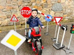 So sadou detských dopravných značiek premeníte akýkoľvek priestor na zábavné a poučné dopravné ihrisko. Vďaka výške 81 cm sú značky dobre viditeľné a stabilné, takže sa hodia na domáce aj vonkajšie použitie. Jednoduché zostavenie umožní začať s hraním behom chvíľky.