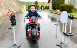 Deti si hravo osvoja základné dopravné značky a bezpečné správanie v premávke počas hier na dopravnom ihrisku.