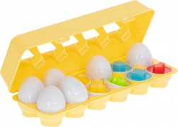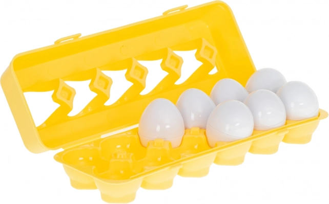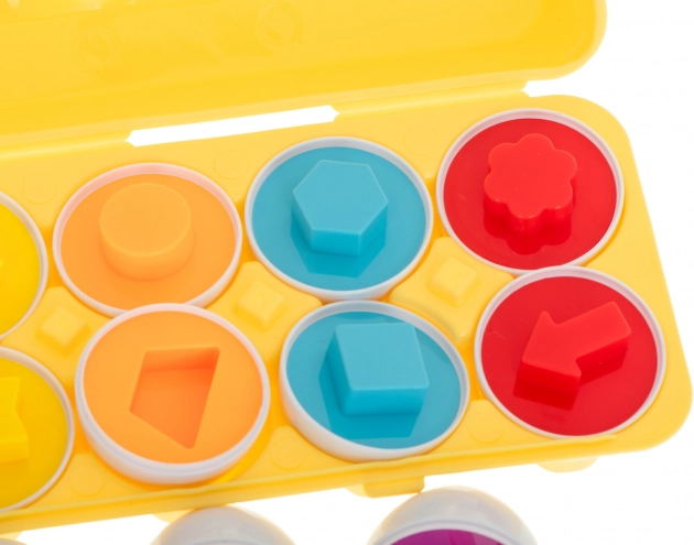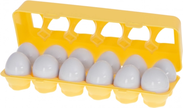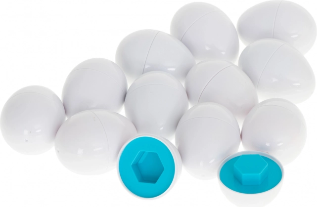 Súprava obsahuje 12 vajíčok s rôznymi tvarmi a farbami ukrytými pod škrupinou. Hra spočíva v priraďovaní polovice vajíčka podľa tvaru a farby tak, aby vytvorili celok. Toto je nielen zábavná, ale aj edukatívna činnosť, ktorá posilňuje logické myslenie. Vajíčka sú ľahké a ľahko prenosné, čo ich činí ideálnymi na zabavenie počas dlhých ciest alebo pri čakaní na návštevu u lekára.