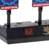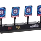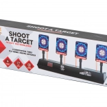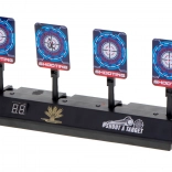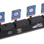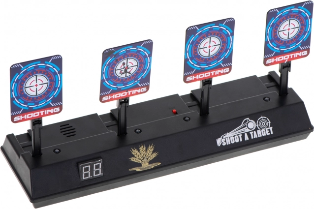 LED displej prehľadne počíta body a po zásahu všetkých štyroch cieľov sa terče samy zdvihnú – hra plynule pokračuje bez ručného nastavovania.