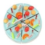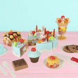 Šesť dielov torty je spojených suchým zipsom – deti ich ľahko rozkroja plastovým nožom a poskladajú späť. Ideálne na tréning jemnej motoriky a realistickú hru.