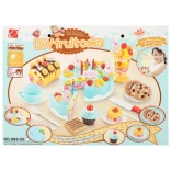 • Obsah sady (75 ks): 6× diel torty, 5× sviečka, 14× pusinka (bezé), 7× cukrová tyčinka, 4× čerešnička, 4× mandarínka, 3× jahoda, 3× kiwi, 4× zajačik, 1× nápis, 3× tanierik, 3× sušienka, 3× kúsok rolády, 3× cupcake, 1× šálka, 1× lyžička, 1× vidlička, 1× nožík, 1× lopatka na tortu, 1× pohár na zmrzlinu, sada samolepiek, sada suchých zipsov.