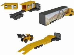 Objavte realistický kovový nákladný automobil Volvo, ktorý poteší detailným spracovaním a variabilitou. Vybrať si môžete z troch atraktívnych variant – s prívesom a kolesovým nakladačom, s dvoma stavebnými kontajnermi alebo ako kamión s odpojiteľným prívesom. Robustný kovový podvozok zabezpečuje dlhú životnosť a stabilitu pri jazde aj hraní.