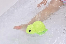 Zábavná zelená korytnačka do vane pláva po hladine a strieka vodu, takže premení každý kúpeľ na radostnú hru. Kompaktná veľkosť 11 cm skvele padne deťom do ruky a bezpečné plastové prevedenie je ideálne na každodenné vodné hry.
