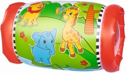 Nafukovací valec na podporu lezenia je ideálna pomôcka pre bábätká a batoľatá, ktoré začínajú objavovať svet pohybom. Priehľadné bočnice umožňujú sledovať dve hrkajúce guličky vo vnútri, ktoré pri váľaní vydávajú zvuky a podnecujú dieťa k ďalšiemu skúmaniu. Veselá potlač zvieratiek zvyšuje atraktivitu a podporuje vizuálne vnímanie.