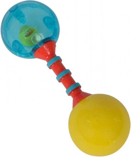 Táto hrkálka stimuluje zmyslový rozvoj dieťaťa vďaka svojím jasným farbám a zvukom, ktoré vydáva pri triasení.