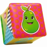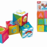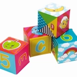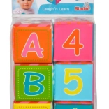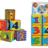 Balenie obsahuje 6 mäkkých kociek pre najmenších. Veľkosť kociek je 8 x 8 cm. Veselé farby, obrázky zvieratiek, čísel a písmen.