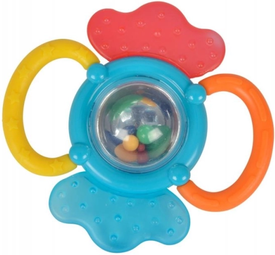 Kombinácia hrkálky a hryzátka v jednom, ideálne pre deti od 3 mesiacov veku. Poskytuje zábavu a podporuje zmyslový rozvoj dieťaťa.