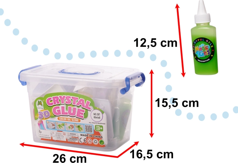 Gél môžete nalievať aj priamo do roztoku a tvoriť vlastné jedinečné tvary. Tvorenie rozvíja kreativitu, trpezlivosť a jemnú motoriku a je skvelým relaxom aj pre dospelých. Celý set je uložený v pevnom plastovom boxe pre jednoduché prenášanie a skladovanie.