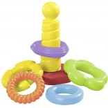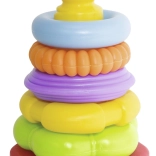 Pyramída s farebnými krúžkami je ideálna pomôcka pre rozvoj motoriky a schopnosť kombinovať u detí. Obsahuje päť rôznofarebných krúžkov rozličných tvarov.