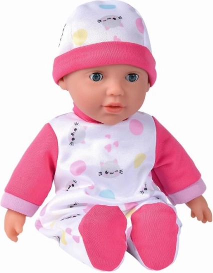 Interaktívna bábika Laura je ideálna pre malé dievčatá, ktoré si chcú zahrať na rodičov alebo opatrovateľov. Je oblečená v roztomilom oblečení s mačkami a bodkami, ktorý možno ľahko zložiť. Laura vydáva päť radostných zvukov, ktoré sa spustí po stlačení bruška, čím obohacujú zábavu.