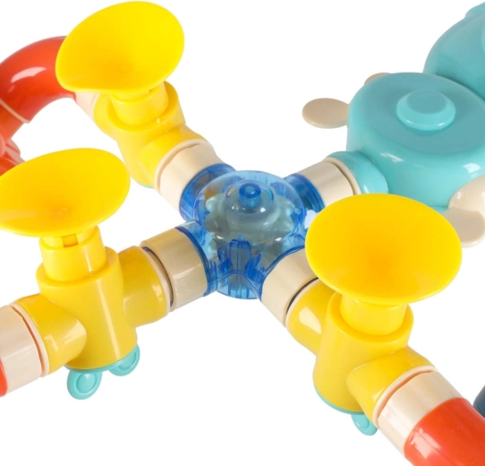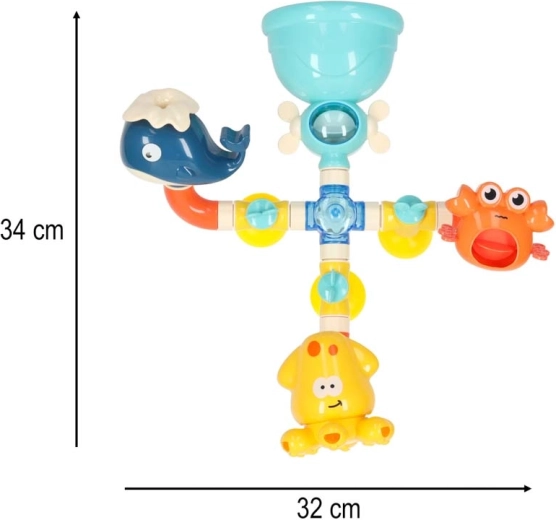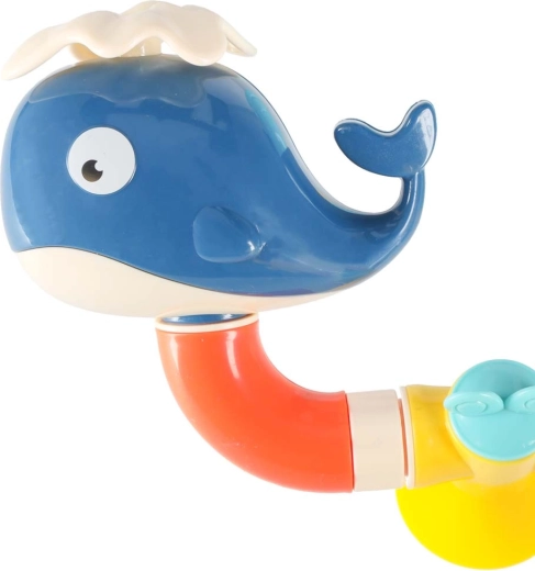Táto farebná vodná dráha do vane sa skladá z lievikov, trubiek a veselých vývodov v tvare veľryby, kraba a chobotnice. Deti jednoducho nalejú vodu zhora a sledujú, ako preteká systémom, roztáča kolieska a vyteká z rôznych otvorov ako fontána alebo vodopád. Bezpečné materiály a oblé hrany sú ideálne na každodenné vodné hranie.