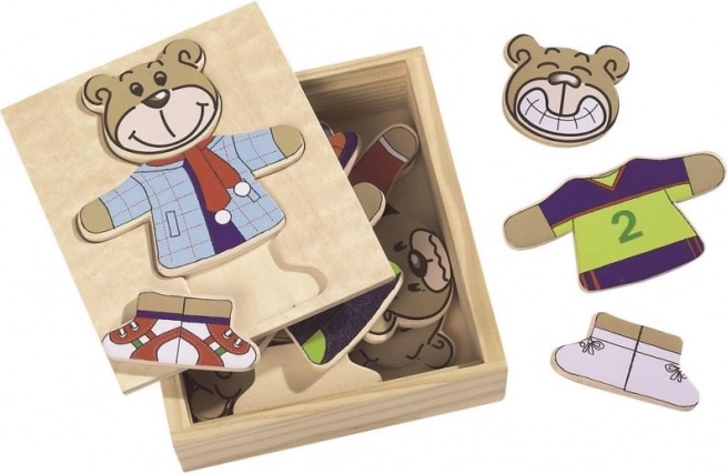 Obliekni si svojho medvedíka s touto zábavnou skladačkou! Obsahuje 20 dielov a prichádza v praktickom drevenom boxe.