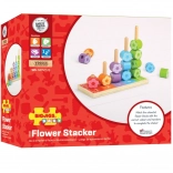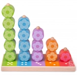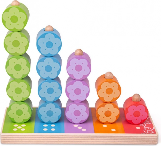 Každý stĺpik má svoj počet a farbu, takže deti ľahko pochopia princíp párovania a počtu. Kvietkové dieliky sa pohodlne držia aj malým rúčkam a motivujú k samostatnej hre aj spoločnému objavovaniu s rodičmi.