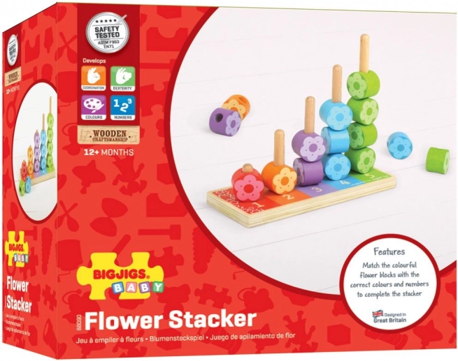 Drevené nasadzovanie farebných kvietkov BIGJIGS