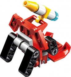 Táto mini stavebnica Qman prináša veľkú porciu zábavy v malom balení. Vďaka šikovnému 3v1 dizajnu ľahko postavíte tri rôzne modely – od akčného „zostrelovača“ cez futuristické vozidlo až po mini robotickú jednotku. Pestrofarebné diely z kvalitného ABS plastu zaručujú odolnosť a dlhú životnosť.