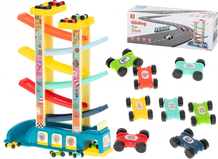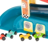 Vďaka 8 autíčkam je súprava ideálna pre súrodencov aj kamarátov a skvele sa hodí do detských kútikov. Pri hre si deti precvičujú jemnú motoriku, pozorujú základné princípy fyziky a rozvíjajú logické myslenie. Spodná garáž udrží poriadok a farebné prevedenie poteší ako ozdoba detskej izby.