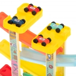 Pripraviť, pozor, štart! Ktoré z pestrofarebných autíčok dorazí do cieľa ako prvé? Viacposchodová autodráha zaručuje akčný zjazd s efektnými preskokmi medzi poschodiami a plynulú jazdu až nadol. Štart môže prebehnúť z dvoch úrovní – z najvyššieho alebo druhého poschodia – a postará sa vždy o iný zážitok z pretekov.