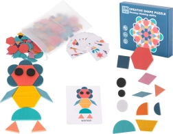 Princíp hry je jednoduchý. Stačí si vybrať kartu s obrázkom, ktorý chcete zložiť, a podľa tohto vzoru hľadať správne puzzle a skladať. Geometrická skladačka je vhodná aj na výučbu tvarov a farieb.