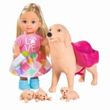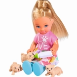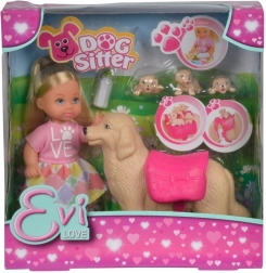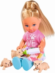 S touto pôvabnou sadou si deti užijú hodiny zábavy pri starostlivosti o zvieratká. Bábika Evi má štýlový obleček a spolu s psou maminou a tromi šteniatkami vytvára dokonalý svet pre nápadité príbehy. Súčasťou sú aj doplnky, ktoré podporujú role-play a učenie sa zodpovednosti formou hry.