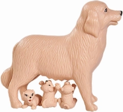 Deti môžu kŕmiť, nosiť a ukladať tri šteniatka k psej mamine – ideálne na hru na opatrovanie a rozvoj empatie.